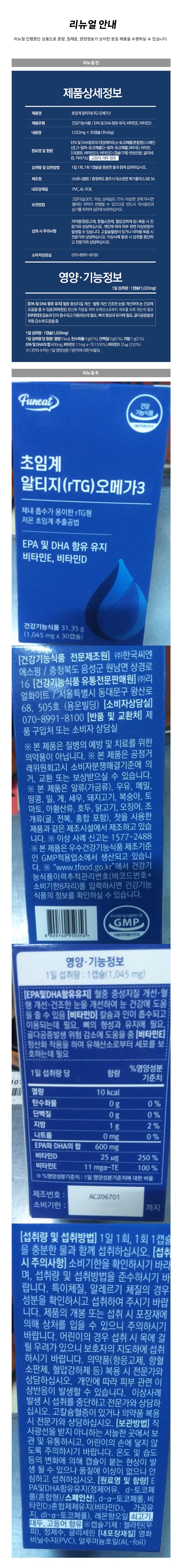 | 제품명 | 초임계 알티지(rTG) 오메가3 | 제조업소의 명칭과 소재지 | 컨텐츠 참조 |
