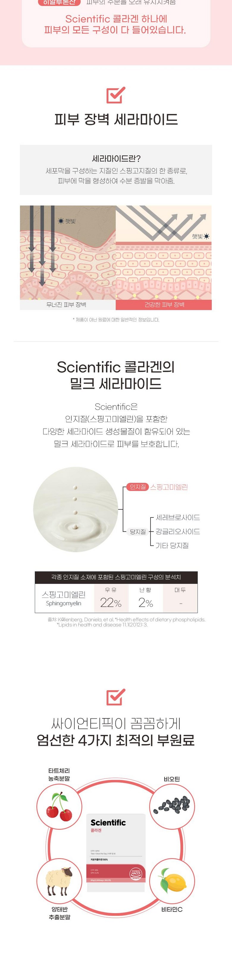 | 원료명 및 함량 | 저분자피쉬콜라겐50%, 무수결정포도당, 타트체리농축분말[터키산(타트체리농축액50%)],합성향료(타트체리향),비타민C(영국),에리스리톨,무수구연산,이산화규소,비오틴,엘라스틴펩타이드(미국산),수크랄로스(감미료),히알루론산,양태반추출분말,밀크세라마이드, 우유함유 | 영양정보 | 해당없음 |