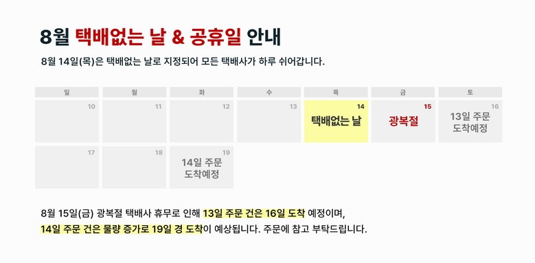 - ㆍ모니터 해상도의 차이로 인해 색상이나 이미지가 실제와 달라, 고객이 단순 변심으로 교환/반품을 무료로 요청하는 경우