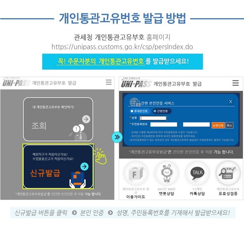 - 법규 개정에 따라 개인통관고유부호 검증 절차가 강화되었습니다. 결제 단계에서 받는 사람의 정보가 관세청 등록 정보 (성명, 휴대폰, 개인통관고유부호, 주소) 와 일치하는지 확인해주세요.