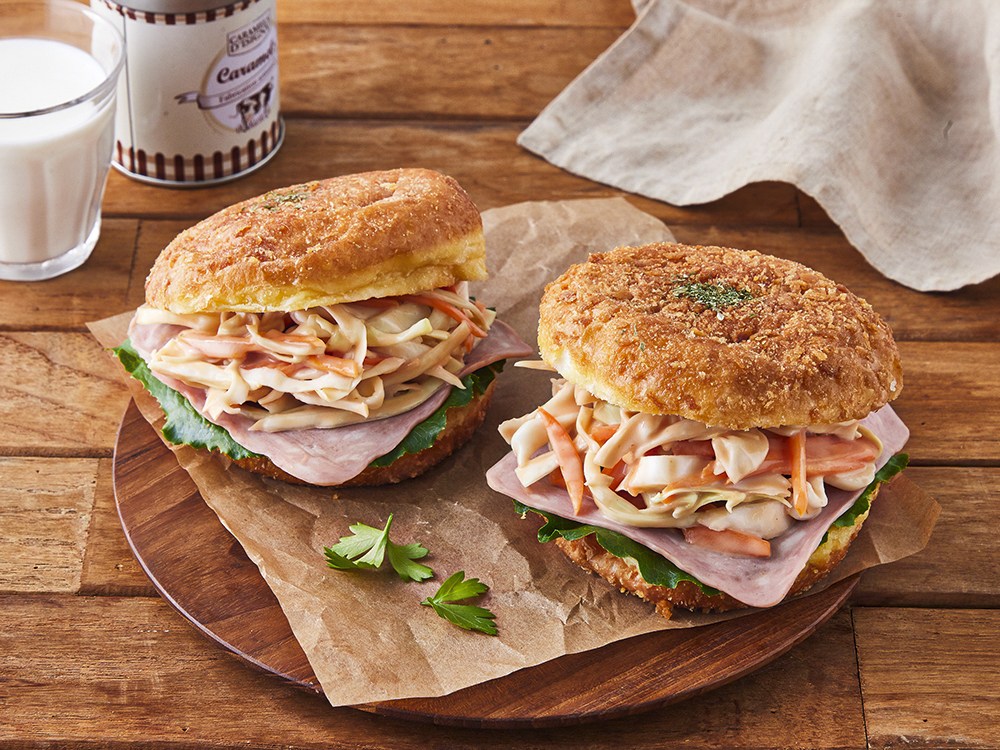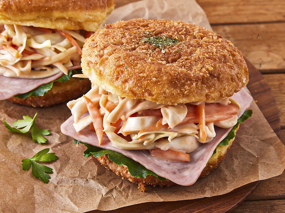 바삭바삭한 빵에 추억을 담은 야채 사라다 고로케예요. 아삭한 채소와 토마토케찹, 마요네즈의 조합이 추억을 불러일으키는데요. 여기에 프레스햄이 짭짤한 포인트를 더해준답니다. 담백한 우유 한 잔과 함께, 추억의 맛이 담긴 간식을 즐겨보시면 어떨까요?