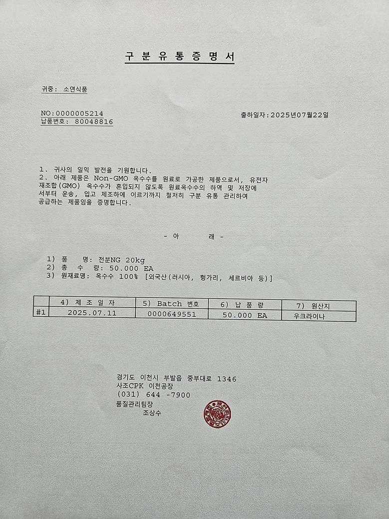 | 생산자(수입자) | 소연식품/경기도 김포시 월곶면 포내로83번길79 | 원산지 | 상품 상세페이지 참조 |