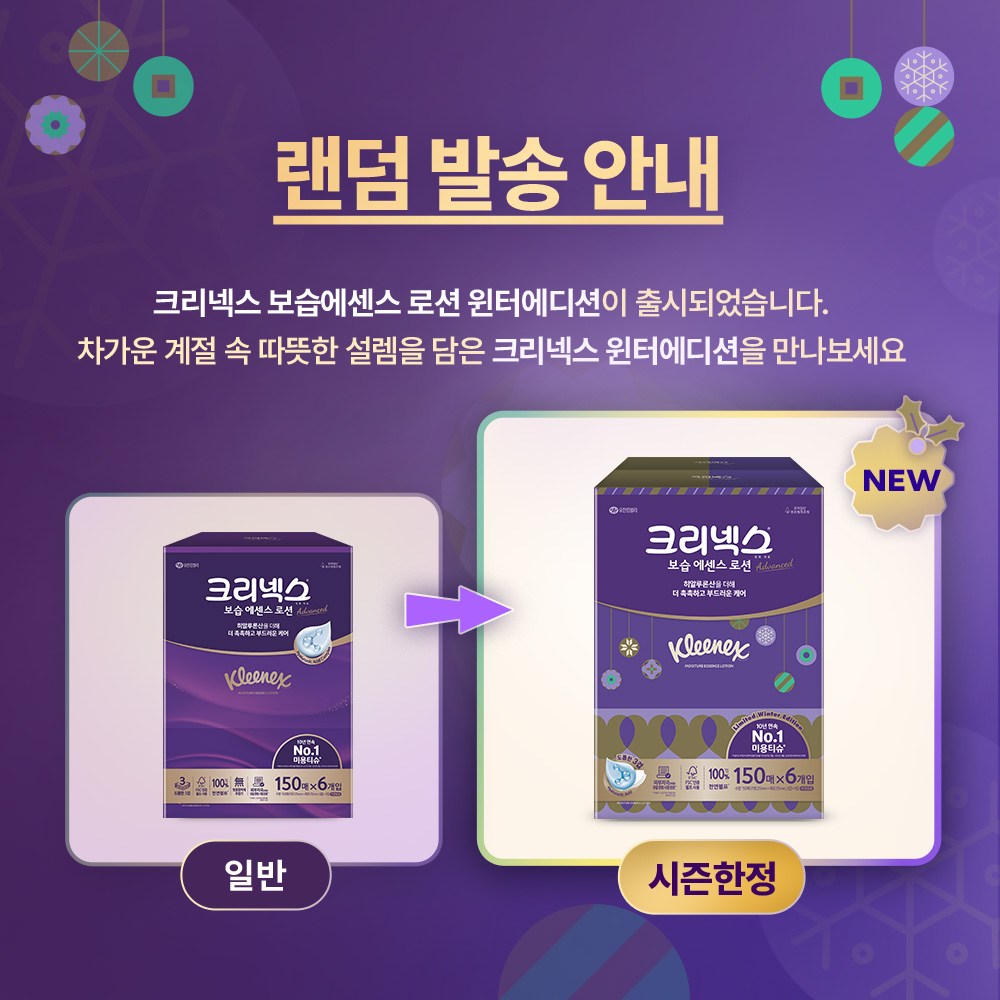 | 품명 및 모델명 | 크리넥스 보습 에센스 로션 | 인증/허가 사항 | 위생용품 |