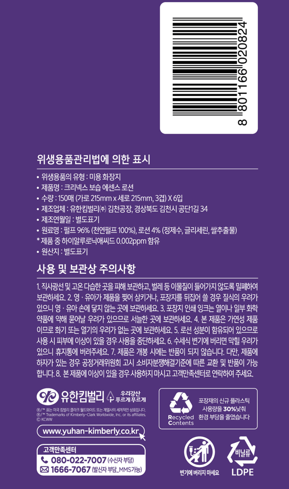 | 제조국(원산지) | 대한민국 | 제조자(수입자) | 유한킴벌리(주) 김천공장 |