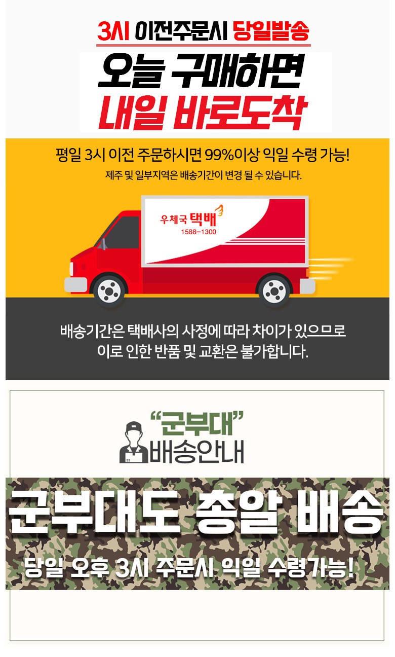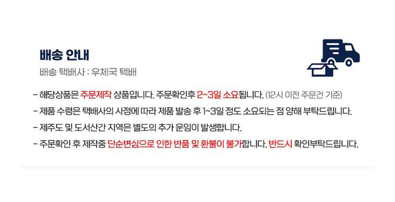 - ㆍ모니터 해상도의 차이로 인해 색상이나 이미지가 실제와 달라, 고객이 단순 변심으로 교환/반품을 무료로 요청하는 경우