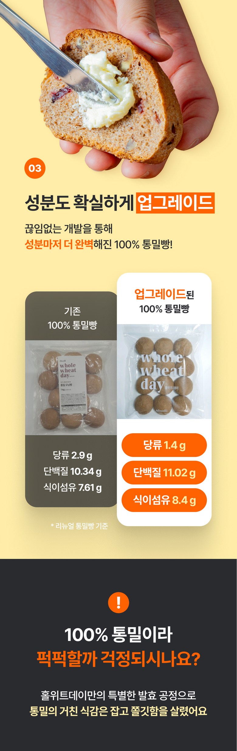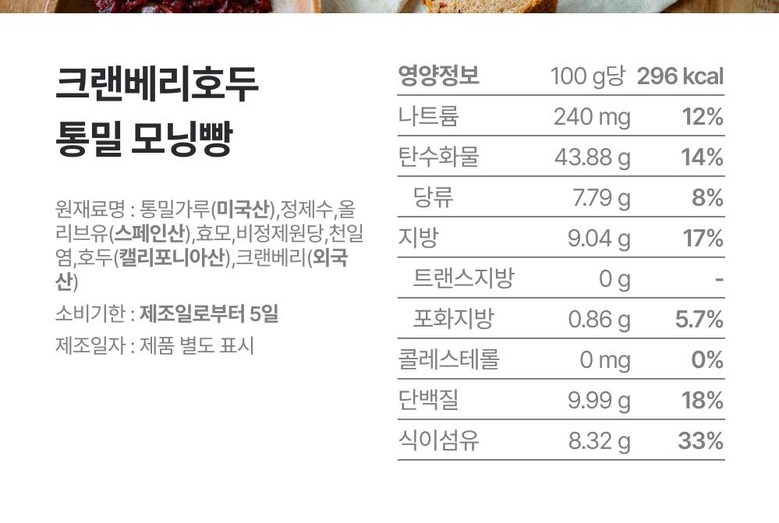 | 제품명 | 홀위트데이 100% 통밀로 만든 빵 | 식품의 유형 | 빵류 |