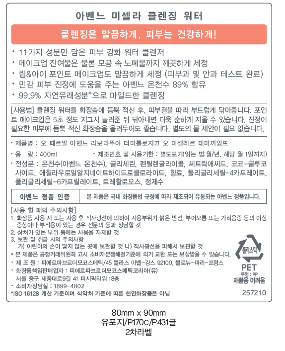 | 용량(중량) | 400ml | 제품 주요 사양 | 모든 피부용 |