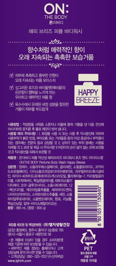 | 용량(중량) | 865ml | 제품 주요 사양 | 모든 피부용 |