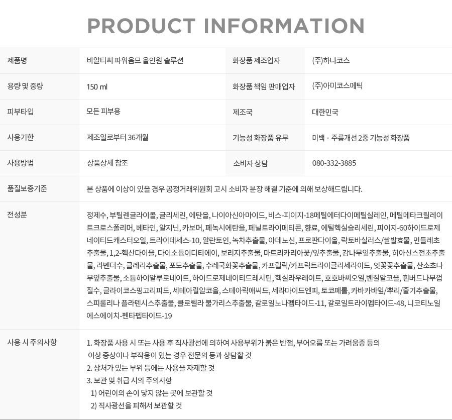 | 화장품제조업자, 화장품책임판매업자 및 맞춤형화장품판매업자 | (주)하나코스/(주)아미코스메틱 | 제조국 | 대한민국 |