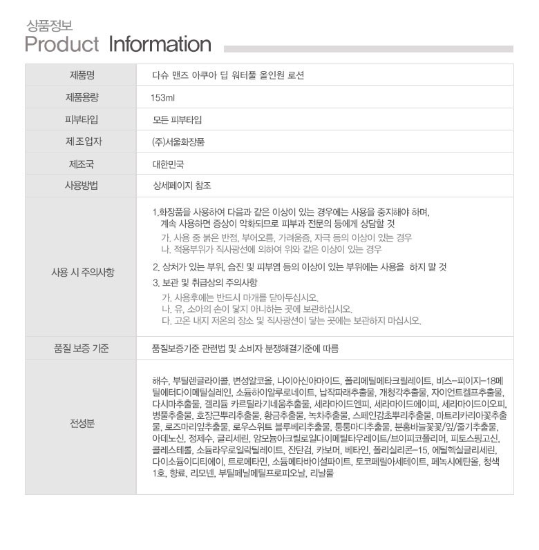 | 용량(중량) | 컨텐츠 참조 | 제품 주요 사양 | 모든 피부용 |