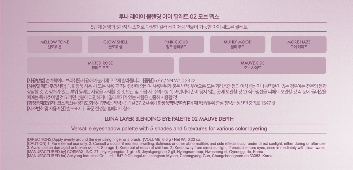 | 화장품제조업자, 화장품책임판매업자 및 맞춤형화장품판매업자 | 코스맥스(주) / 애경산업(주) | 제조국 | 대한민국 |