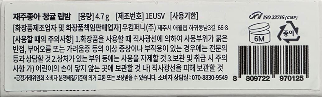 | 화장품제조업자, 화장품책임판매업자 및 맞춤형화장품판매업자 | 컨텐츠 참조 | 제조국 | 컨텐츠 참조 |