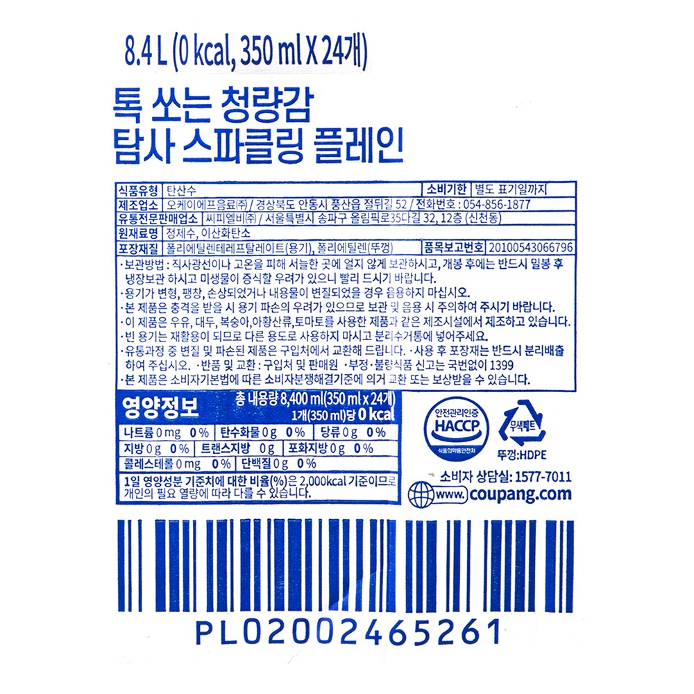 | 포장단위별 내용물의 용량(중량), 수량 | 350ml, 24개 | 원재료명 및 함량 | 컨텐츠참조 |