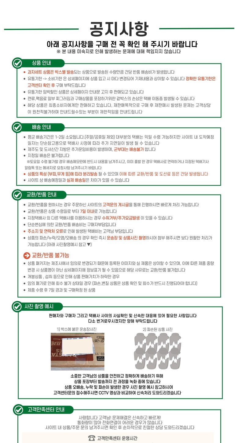 | 제품명 | 상품 상세페이지 참조 | 식품의 유형 | 상품 상세페이지 참조 |