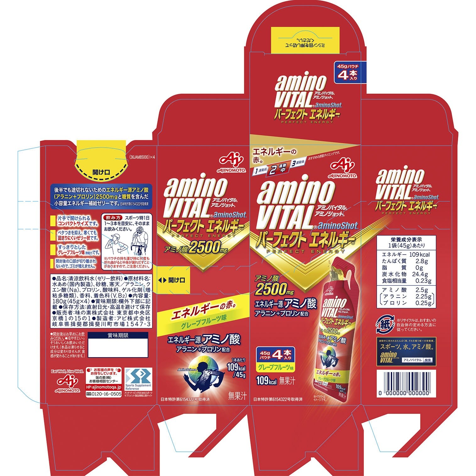 아미노바이탈 아미노샷 퍼펙트 에너지 아미노산 2500mg 자몽 맛 4개입