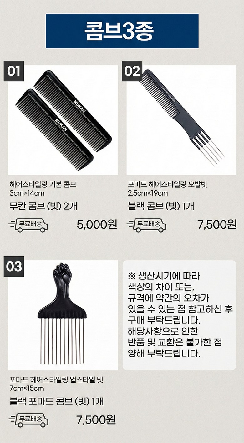 | 품명 및 모델명 | 포마드 콤브(빗) | 인증/허가 사항 | 상품 상세페이지 참조 |