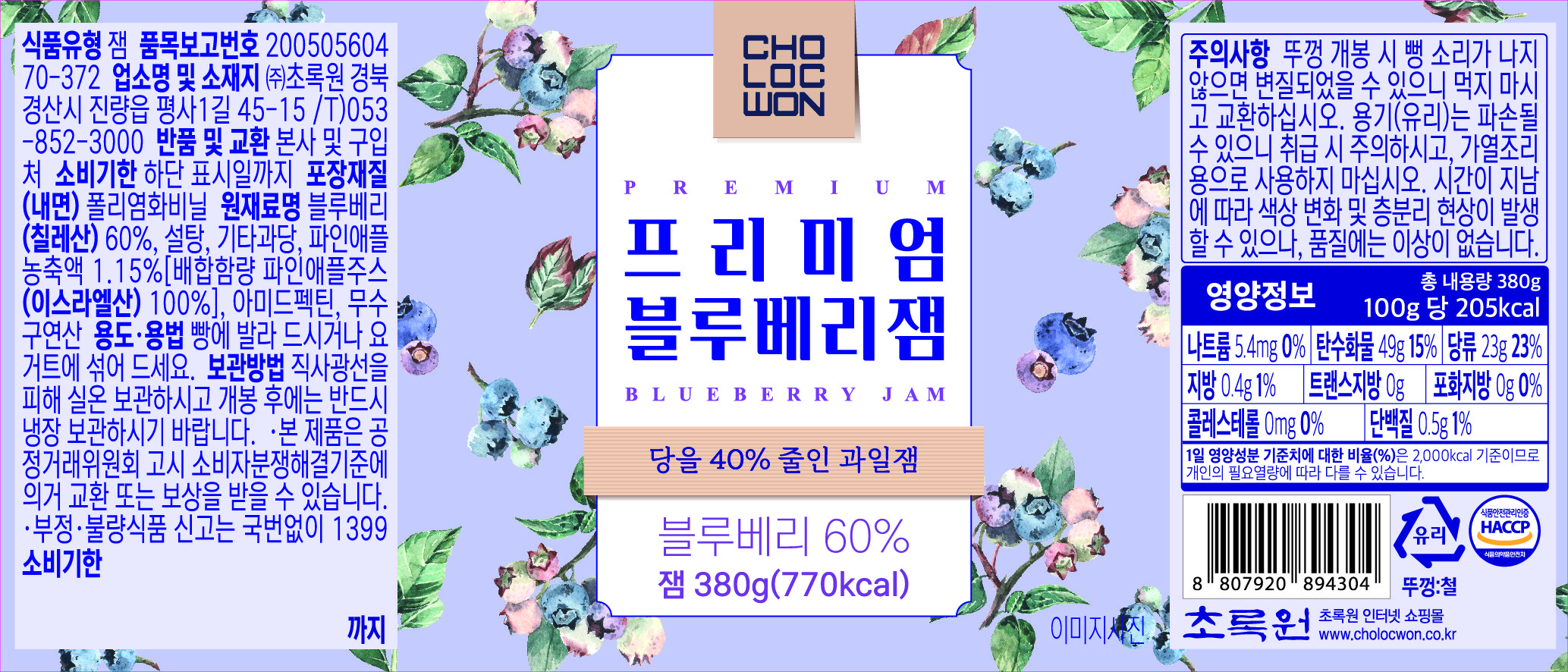 | 제품명 | 프리미엄 블루베리잼 | 식품의 유형 | 컨텐츠 참조 |