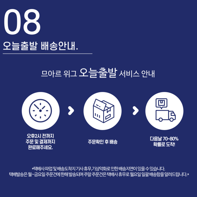 | 배송기간 | ㆍ도서산간 지역 등은 배송에 3-5일이 더 소요될 수 있습니다. - 천재지변, 물량 수급 변동 등 예외적인 사유 발생 시, 다소 지연될 수 있는 점 양해 부탁드립니다. | ||