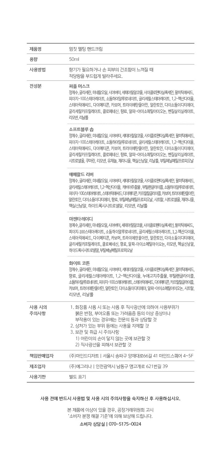 | 화장품제조업자, 화장품책임판매업자 및 맞춤형화장품판매업자 | 상품 상세페이지 참조 | 제조국 | 대한민국 |