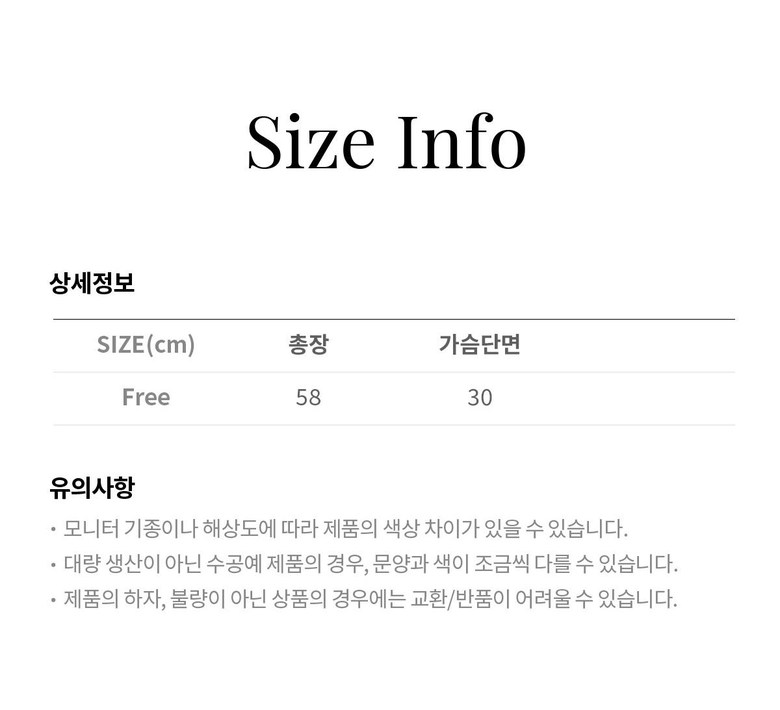 - ㆍ모니터 해상도의 차이로 인해 색상이나 이미지가 실제와 달라, 고객이 단순 변심으로 교환/반품을 무료로 요청하는 경우
