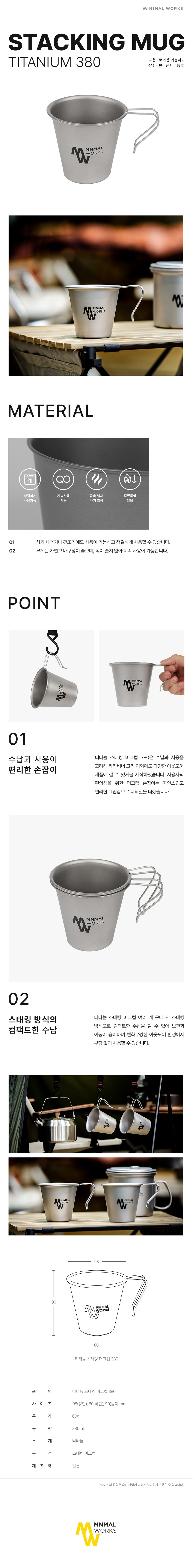 | 품명 및 모델명 | 미니멀웍스 티타늄 스태킹 머그 380ml 실버 1개 | KC 인증정보 | 해당없음 |