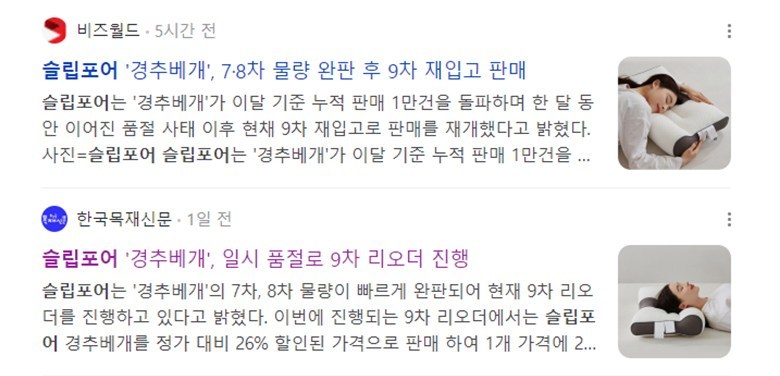 슬립포어 베개가 최근 각종 카페와 커뮤니티 후기로
