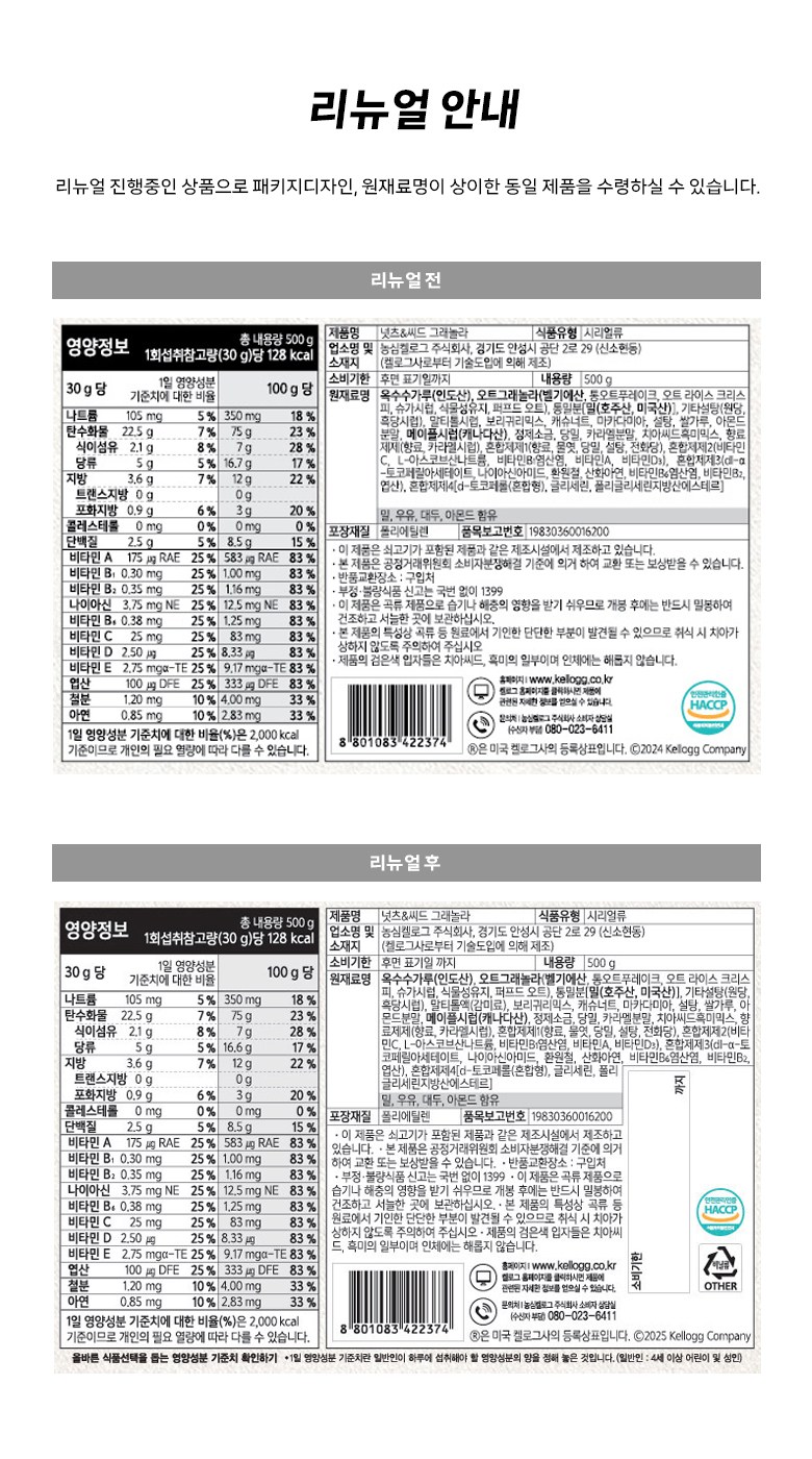 - 시리얼 종류: 곡물/일반용