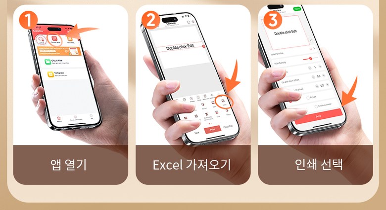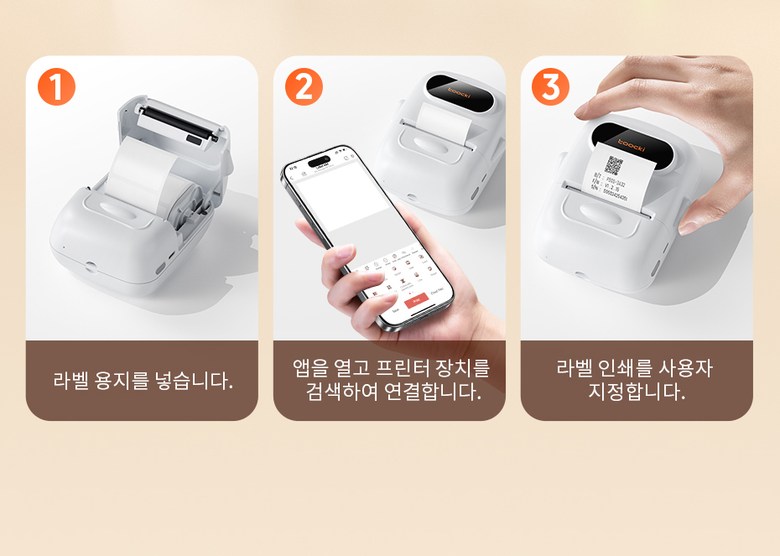 3. 프린터 블루투스 연결 4.라벨지 사이즈 선택 5. 내용 작성