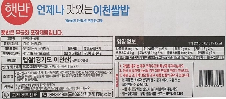 - 섭취방법: 즉석완조리식품