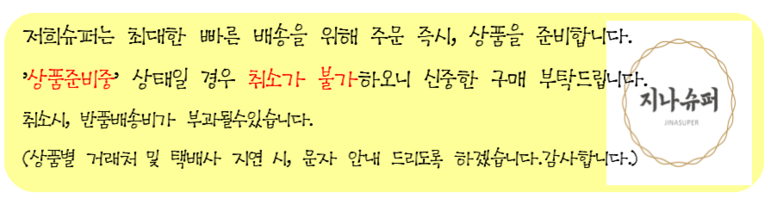 - 상품문의 및 후기게시판을 통해 취소나 환불, 반품 등은 처리되지 않습니다.