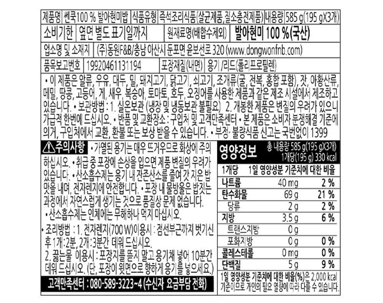 - 섭취방법: 즉석완조리식품
