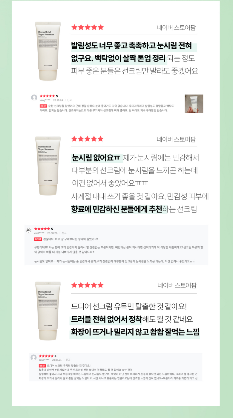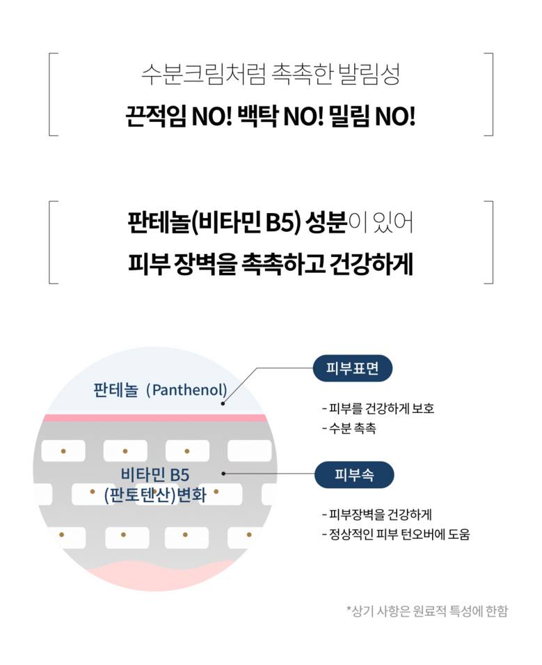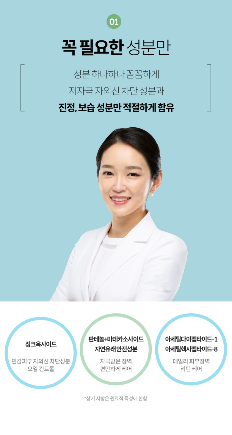 | 사용기한 또는 개봉 후 사용기간 | 제조25-09-11, 유통 28-09-07까지 (개봉 후 12개월) | 사용방법 | 손가락 두 마디 정도로 충분한 양을 자외선에 노출되기 전, 얼굴 및 목 부위에 발라주세요. 무기자차 특징상 피부에 물리적 막을 씌워 자외선을 차단하기 때문에, 바르자마자 자외선 차단 효과가 있습니다. 햇살이 강한날이나 야외 활동을 오래하는 날에는 2-3시간에 한 번씩 덧발라주시기를 권장합니다. 보송하고 매트한 마무리감때문에 건조하게 느낄 수 있어서 건성 피부라면 보습 크림을 두 세번 레이어링 하듯이 바른 후에 시간이 조금 지난 후 선크림을 사용하시길 추천드리며 무기자차 특징상 바른 후에는 저자극 약산성 2중 세안을 해주시길 권합니다. |