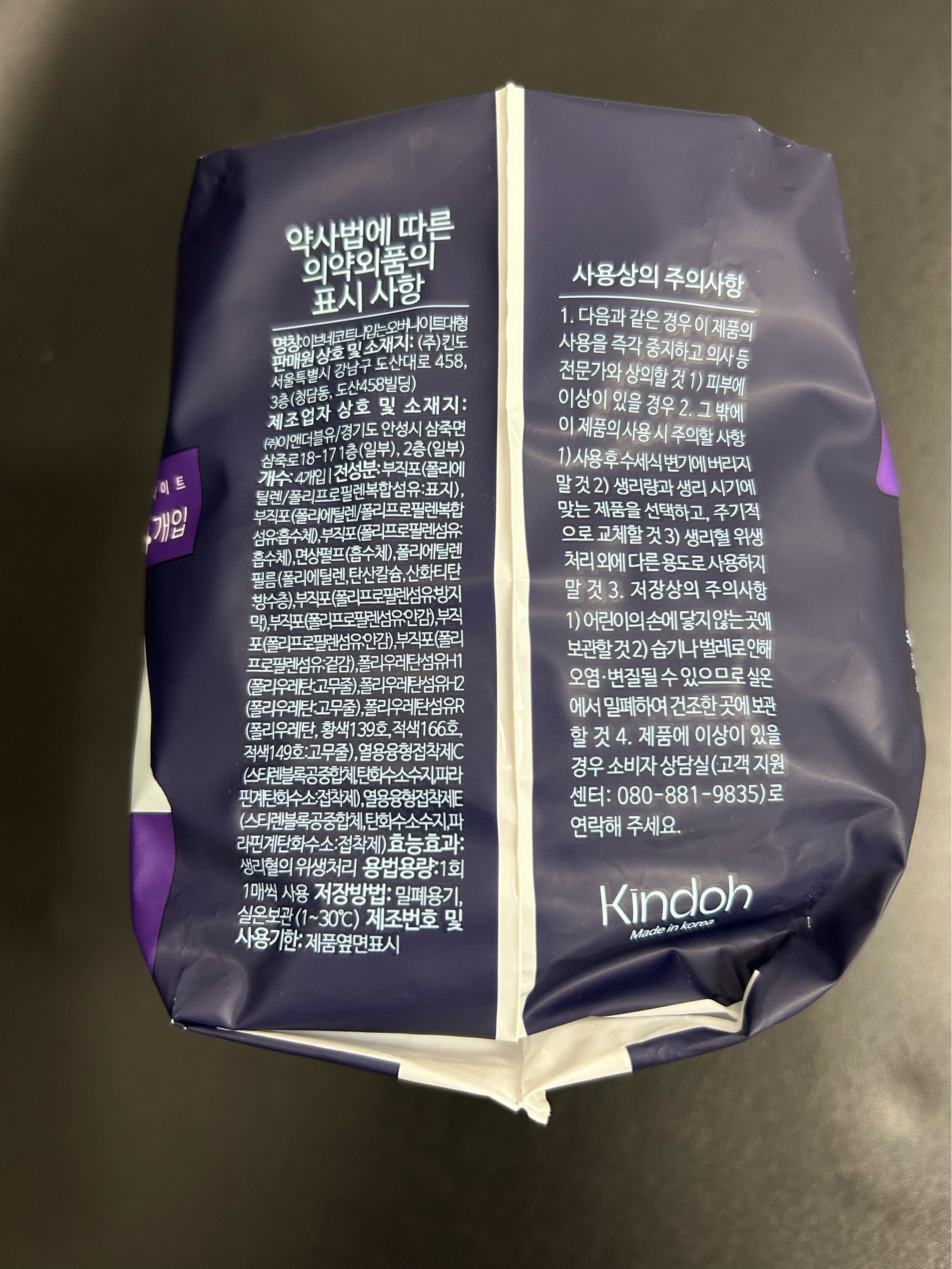 | 품명 및 모델명 | 이브네코트니 입는 오버나이트 대형 | 인증/허가 사항 | 의약외품 |
