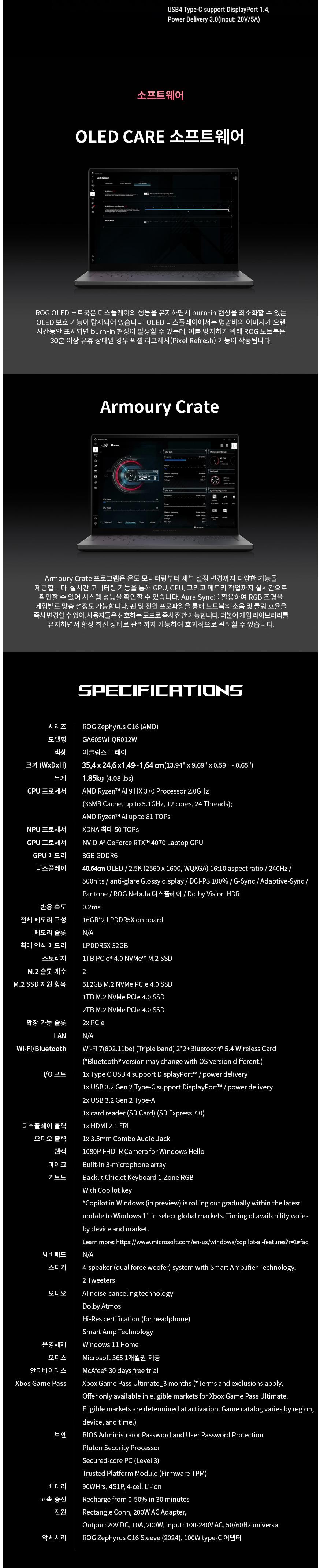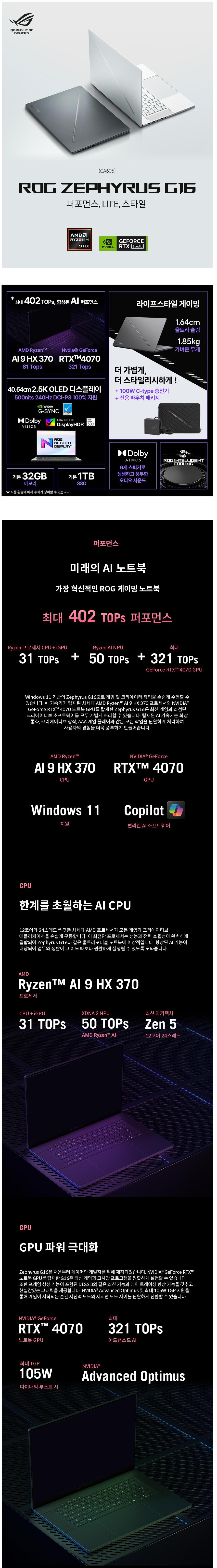 | 품명 및 모델명 | ROG 2024 ROG 제피러스 G16 라이젠9 지포스 RTX 4070/GA605W, GA605WI-QR012W | KC 인증정보 | YU10168-24004, R-R-MSQ-NB-GA605W |