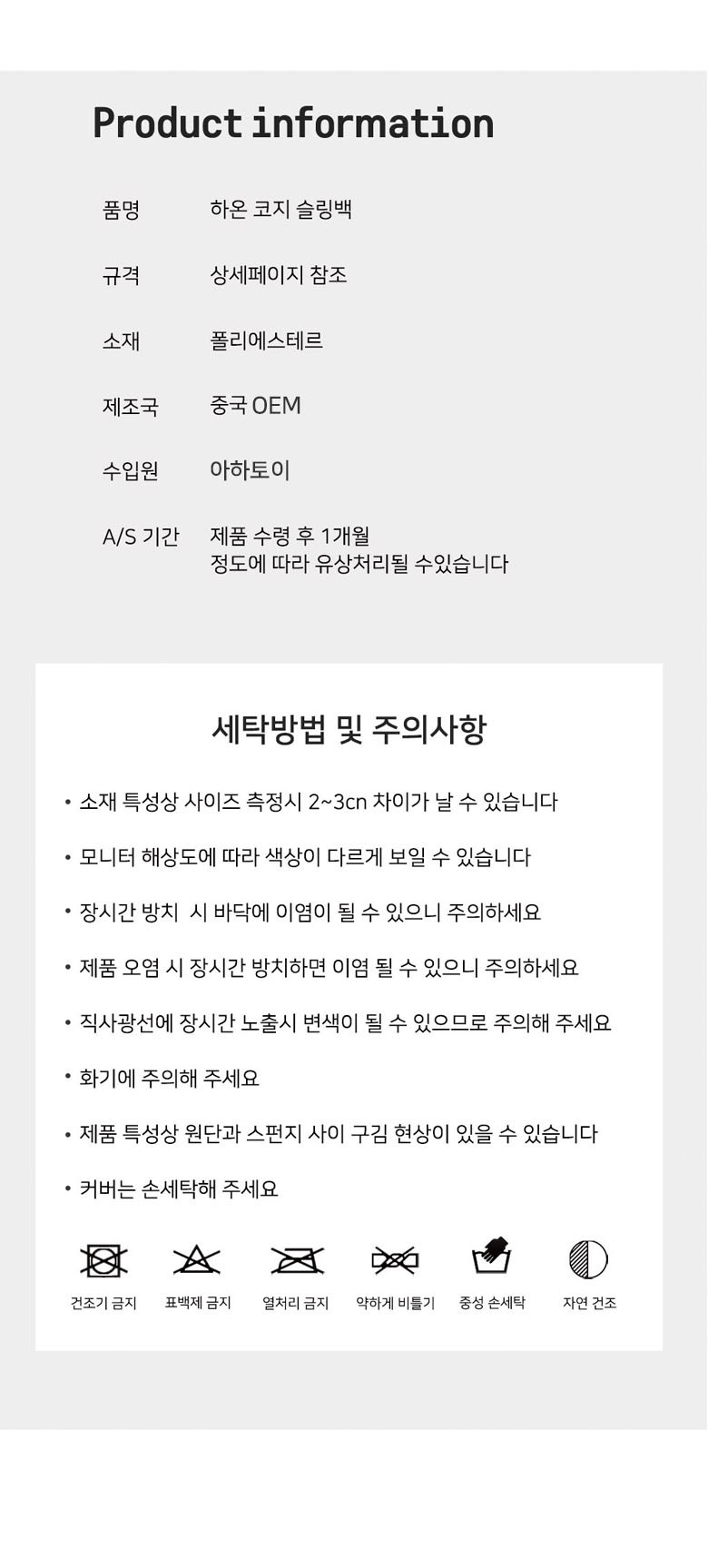 | 제조국(원산지) | 중국 OEM | 제조자(수입자) | 아하토이 |