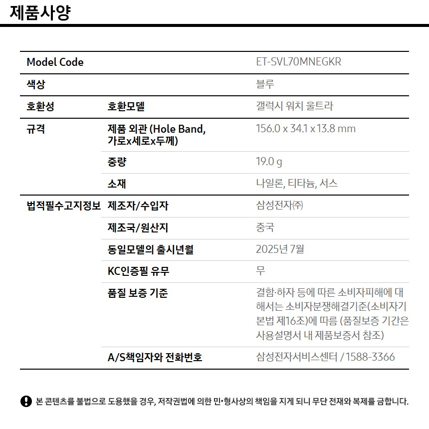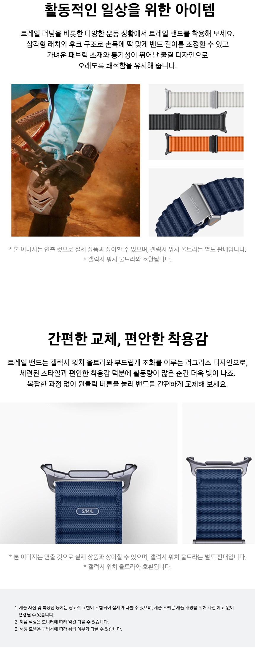 | 품명 및 모델명 | 삼성전자 갤럭시 워치 울트라 트레일 스트랩 밴드 블루 | 인증/허가 사항 | 해당없음 |