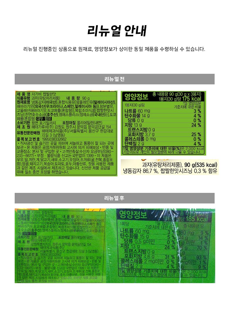 | 제품명 | 컨텐츠 참조 | 식품의 유형 | 컨텐츠 참조 |