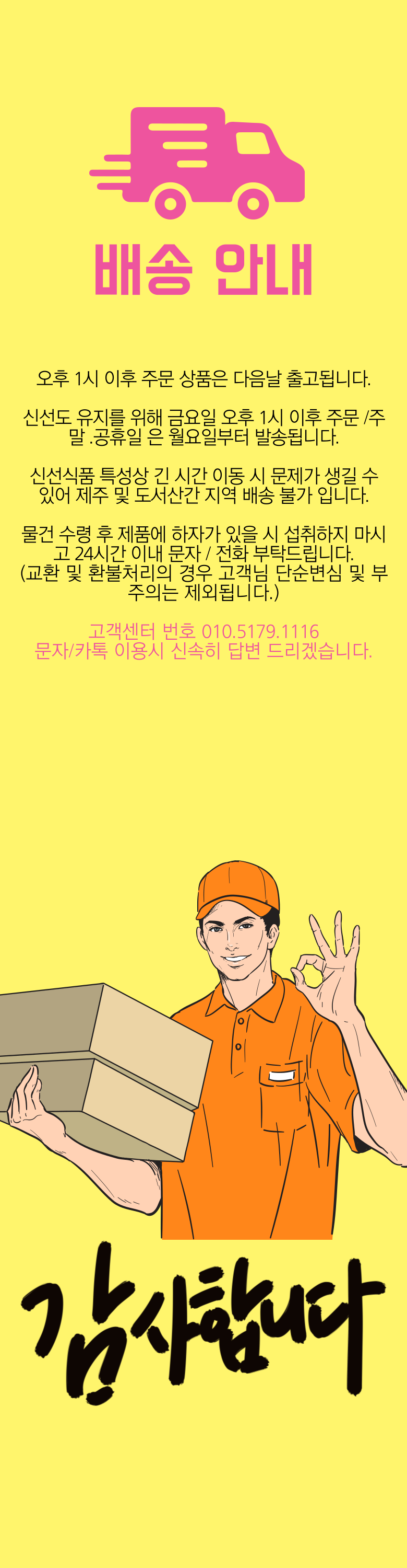 | 배송방법 | 순차배송 | 배송비 | 무료배송 - 도서산간 지역 배송불가 |