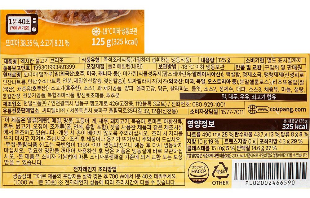 | 포장단위별 내용물의 용량(중량), 수량 | 125g x 12개 | 원재료명 및 함량 | 컨텐츠 참조 |