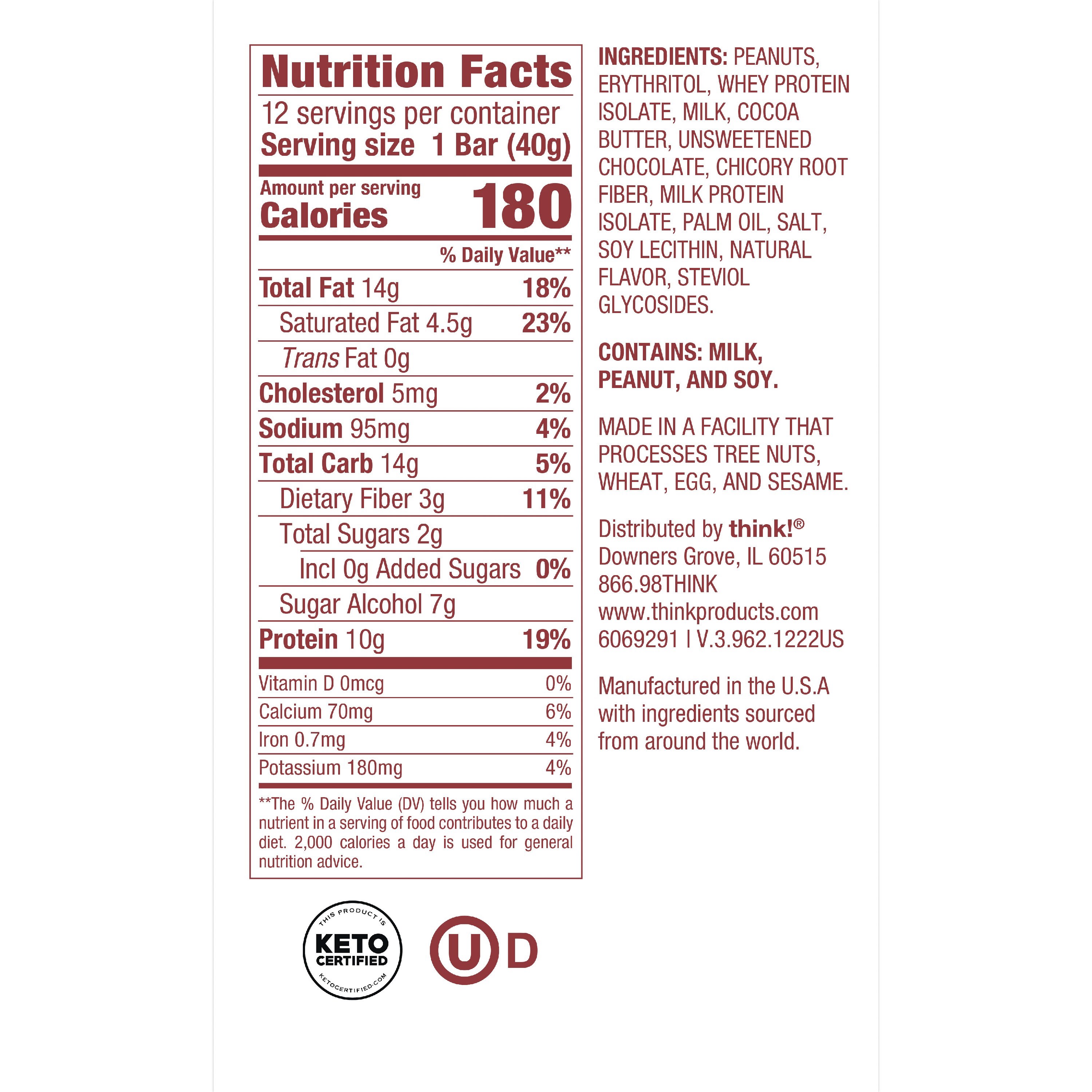 띵크 딜라이트 프로틴 바 초콜릿 피넛 버터 파이 12개입