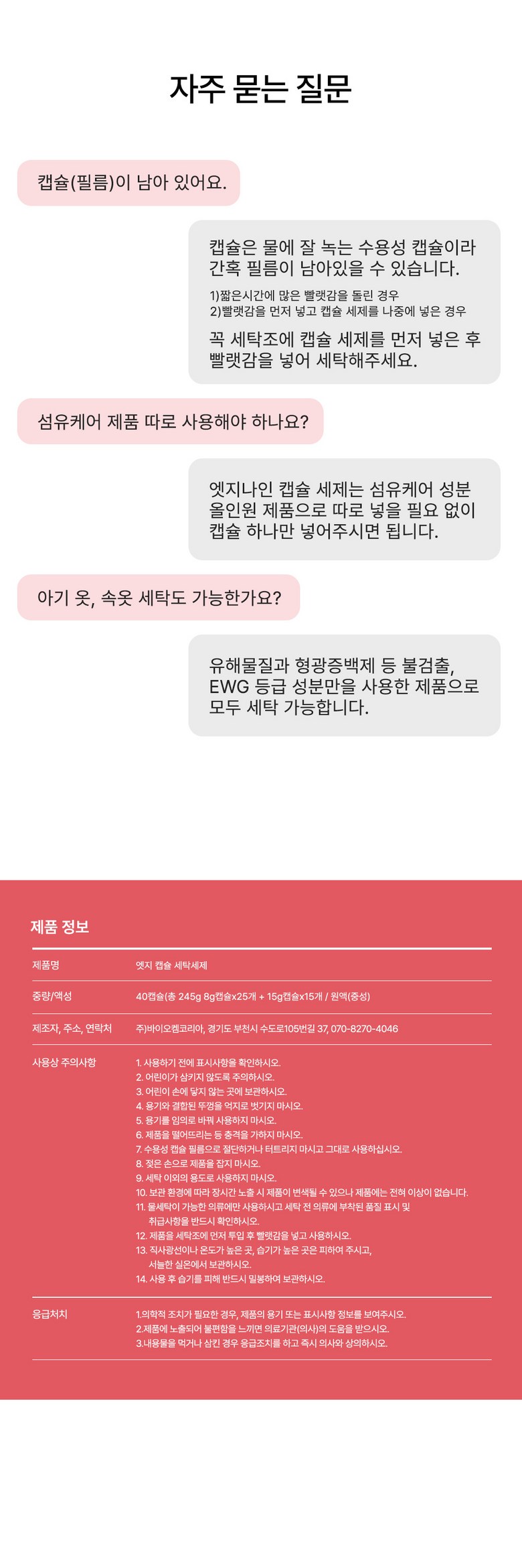 | 품목 및 제품명 | 상품 상세페이지 참조 | 용도(표백제의 경우 계열을 함께표시) 및 제형 | 상품 상세페이지 참조 |