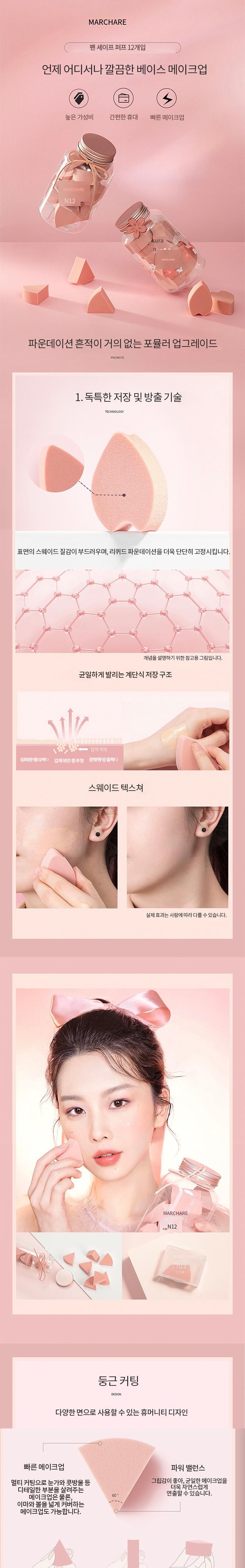 파우더 퍼프를 완전히 적신 후 페이퍼 타올을 이용하여 86%의 물을 흡수시킵니다. 메이크업이 필요한 부위에 베이스 메이크업 제품을 바르고, 스펀지로 가볍게 두드려 흡수시켜 줍니다.