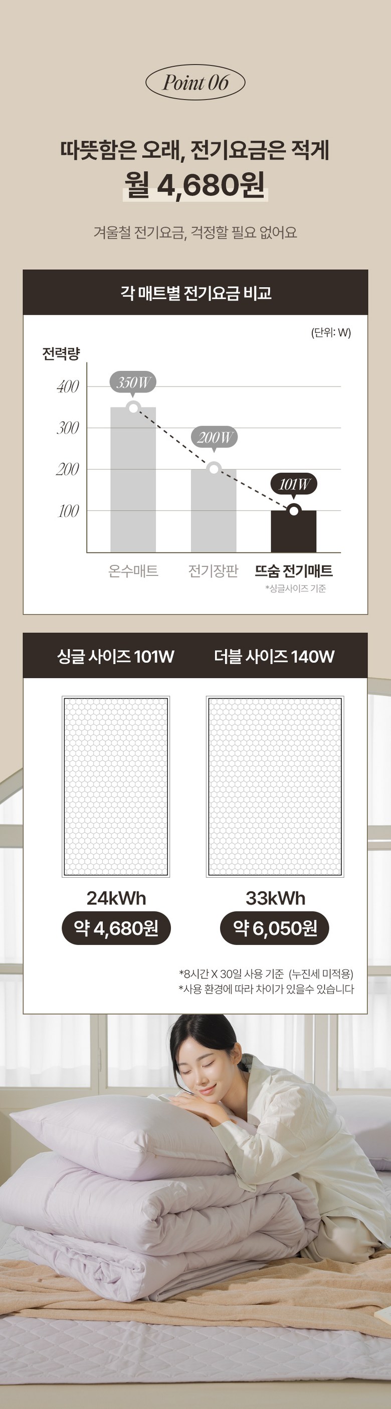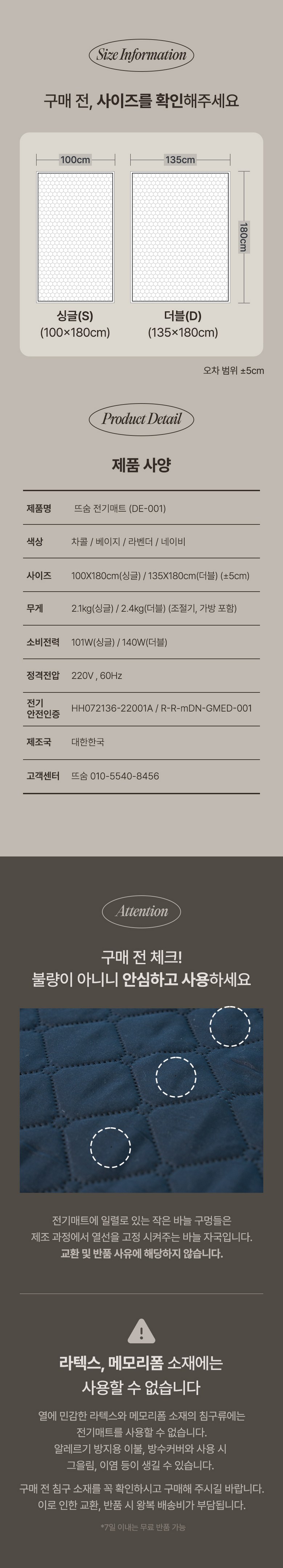 | 정격전압, 소비전력 | 싱글 101W , 더블 140W | 에너지소비효율등급 | 상품 상세페이지 참조 |