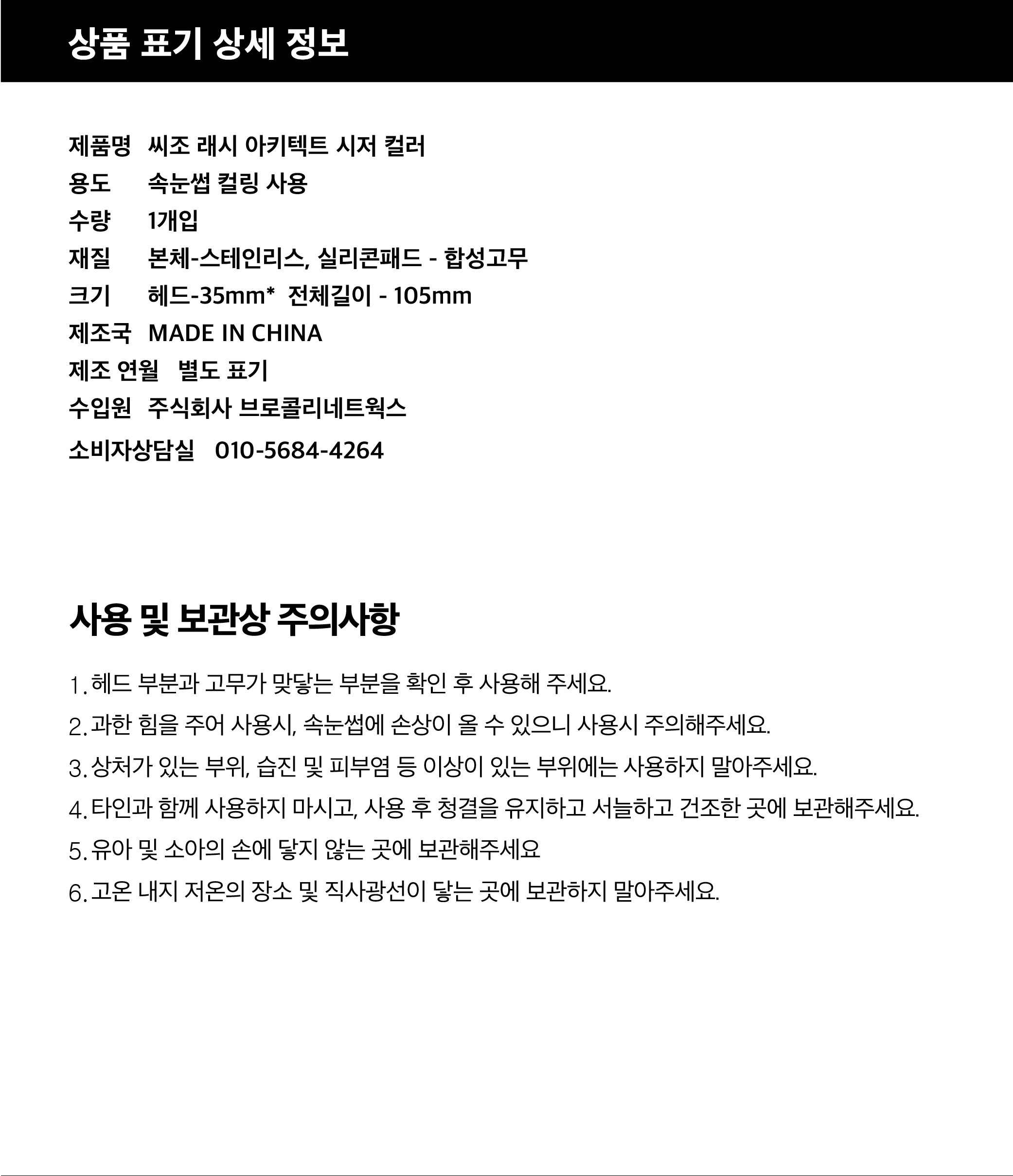 | 품명 및 모델명 | 씨조 래쉬 아키텍트 시저 컬러 | 인증/허가 사항 | 해당 없음 |