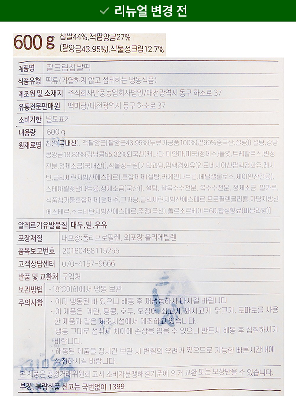 | 제품명 | 컨텐츠 참조 | 식품의 유형 | 컨텐츠 참조 |