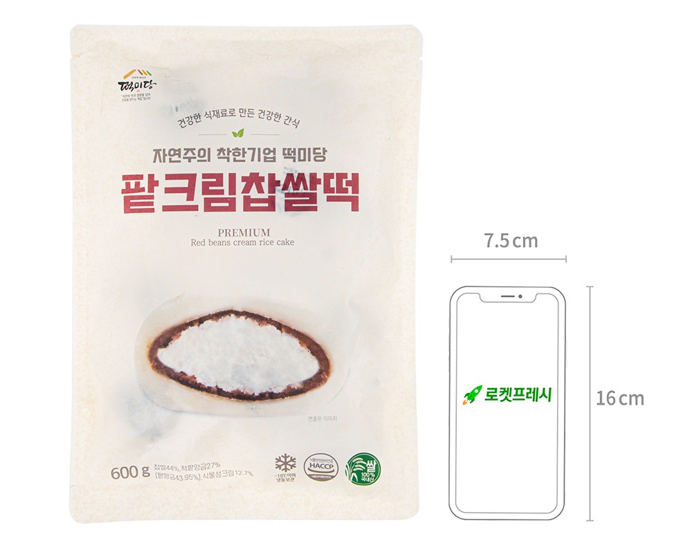 달달한 팥과 크림의 조합은 상상만 해도 군침이 도는데요. 쫀득쫀득한 찹쌀떡 안에 쏙 들어가 있다면 어떨까요? 뽀얀 떡은 씹을수록 말랑말랑한 식감을 자랑해요. 한입 베어 물면 진한 달콤함이 입안 가득 퍼진답니다. 낱개 포장되어 있으니, 하나씩 꺼내 든든한 간식으로 드셔보세요.