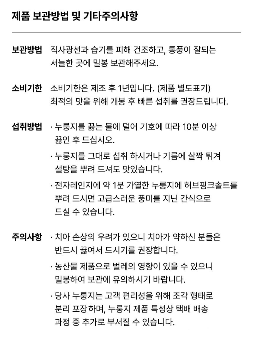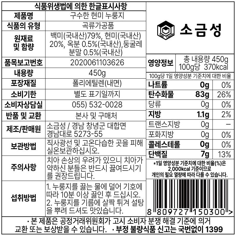 - 누룽지 재료: 현미