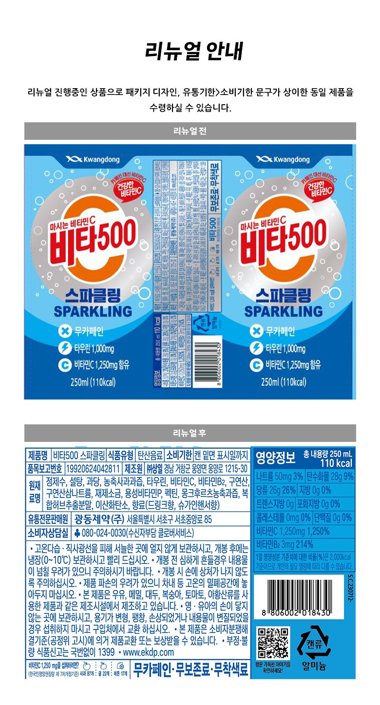 | 포장단위별 내용물의 용량(중량), 수량 | 240ml*24개 | 원재료명 및 함량 | 컨텐츠 참조 |