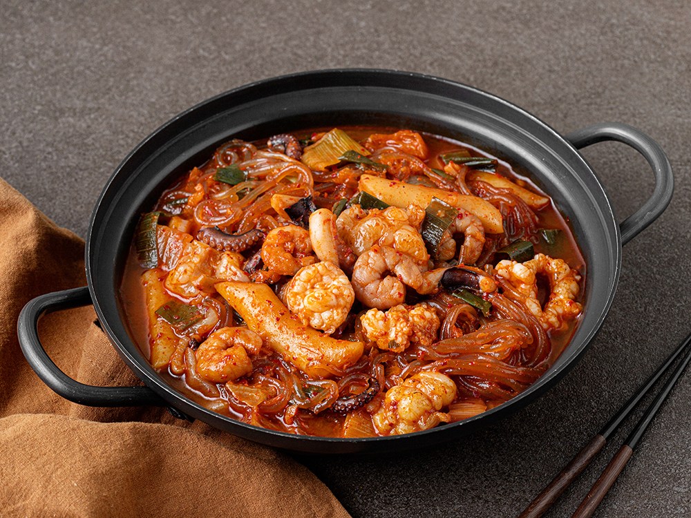낙지, 곱창, 새우의 이름을 딴 낙곱새. 이번엔 곱창 대신 한우대창이 들어간 밀키트로 즐겨보세요. 일일이 재료를 준비할 필요 없이, 냄비에 붓고 끓이기만 하면 완성되어 간편하답니다. 쫄깃쫄깃한 당면과 떡까지 건져 먹는 재미가 있어요. 다 드신 후, 밥을 볶아 먹는 재미도 놓치지 마세요.
