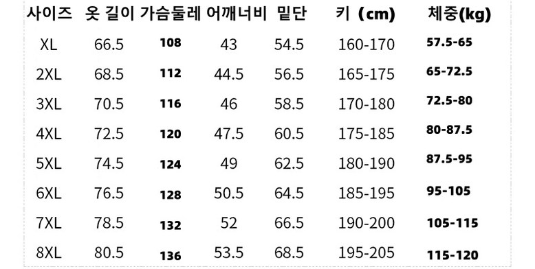 | 치수 | XL,2XL,3XL,4XL,5XL,6XL,7XL,8XL | 제조자(수입자) | Sevenmoon |